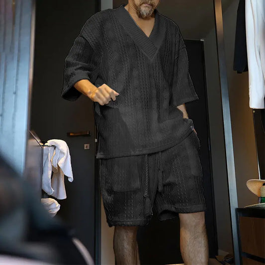 Casual Loose Waffle Short-sleeved Shirt and Shorts Set