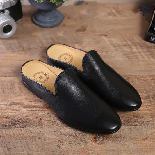 Men's Slippers, Soft Leather Soft Sole Baotou Half Slippers