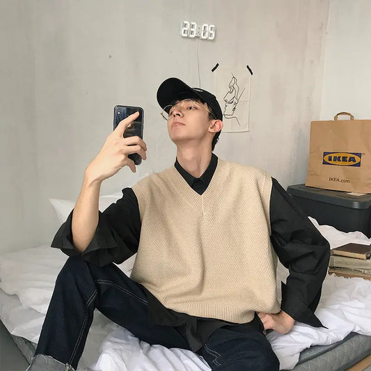 Low Neck Round Mouth Solid Color Cotton Sweater